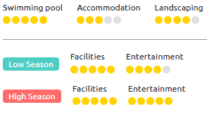 - Accomodation informs you about the quality of the accommodation, its equipment and its outdoor spaces