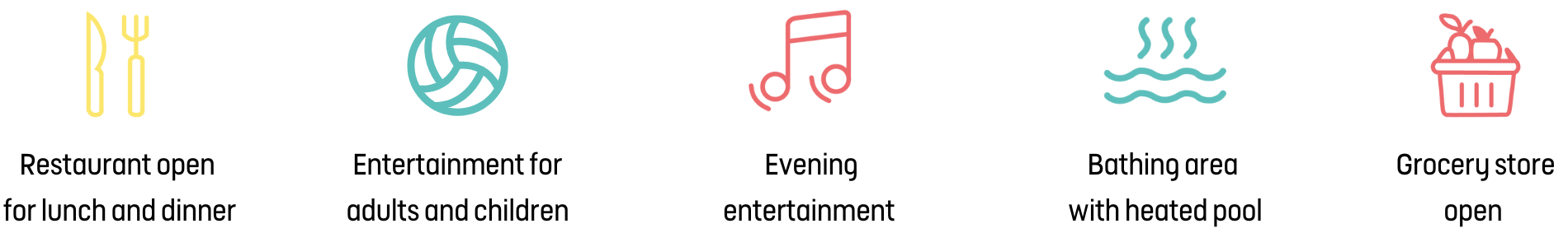 With the All Season Services label, enjoy the quality of Yelloh! Village services and discover the pleasure of a 4- or 5-star camping holiday, in both high and low seasons. Bar, restaurant, grocery store, kids’ clubs, entertainment, or swimming area… In All Season Services campsites, all services are available — whether you’re enjoying a spring weekend, a late-season stay, or a family holiday in the height of summer.